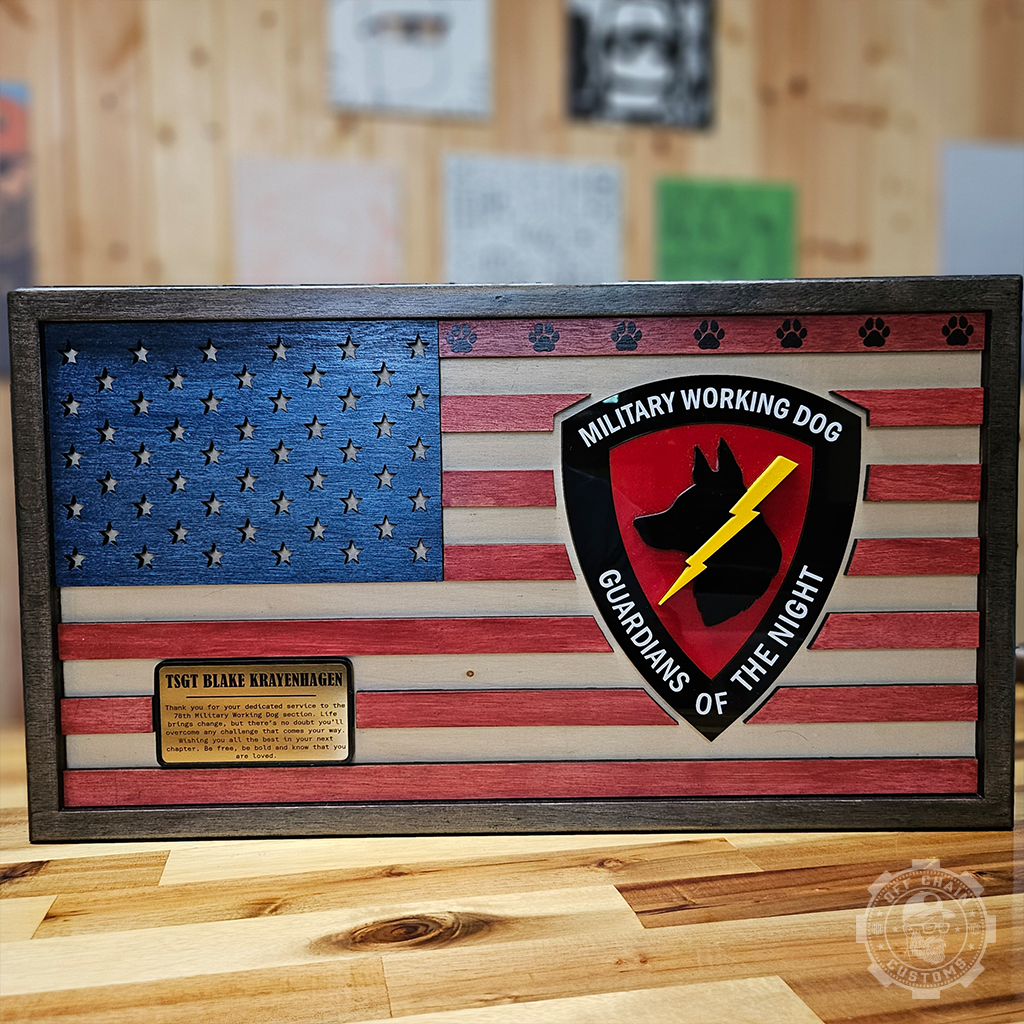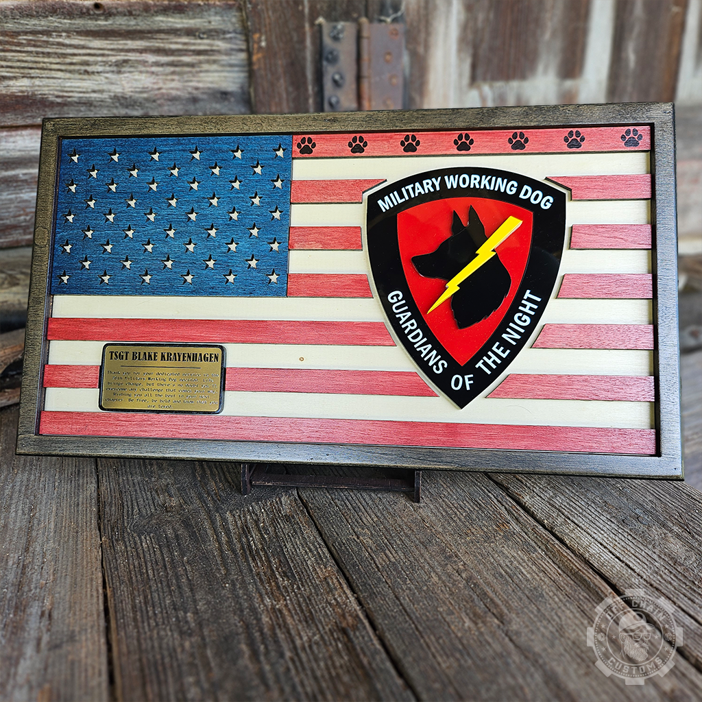 Custom Military K9 Flag – Layered Wood & Acrylic