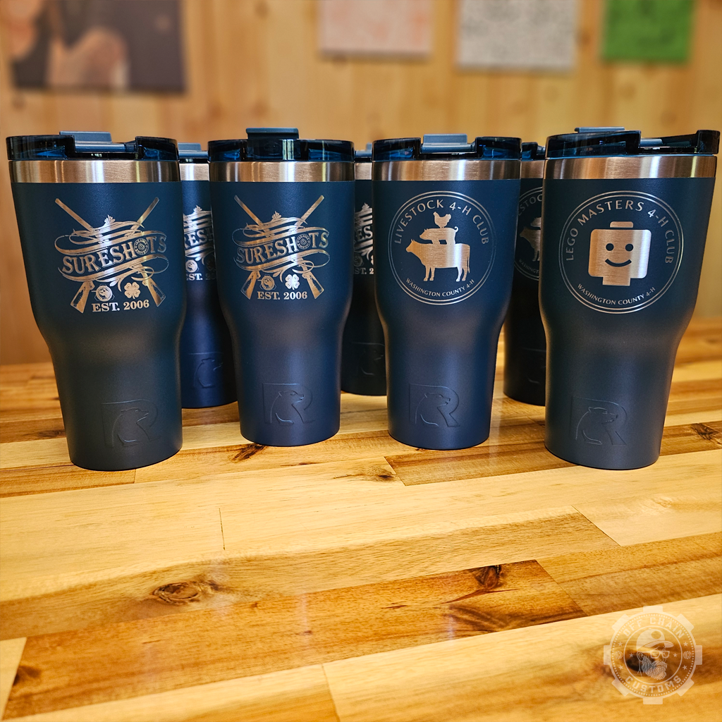 Each tumbler includes your custom logo, Laser Engraved on one or both sides, based on your selection from the dropdown menu.