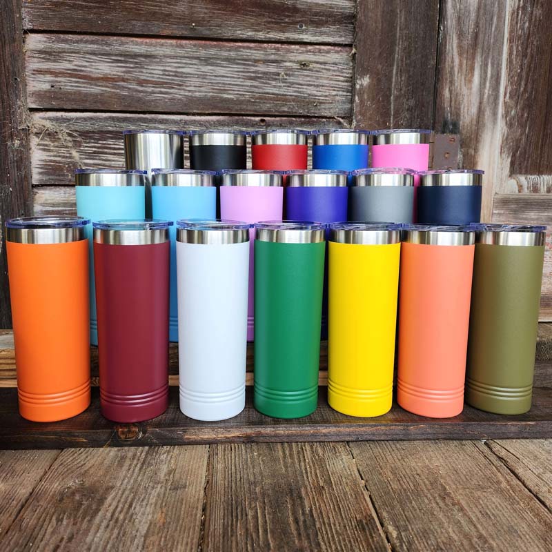 Looking for a sleek and stylish way to enjoy your favorite beverages on-the-go? Look no further than our personalized 22oz skinny tumbler! Made from the same high-quality materials that have made Polar Camel a household name, this tumbler is perfect for those with smaller hands or those who prefer a more compact design. With 17 vibrant colors to choose from, you're sure to find the perfect shade to match your unique style.